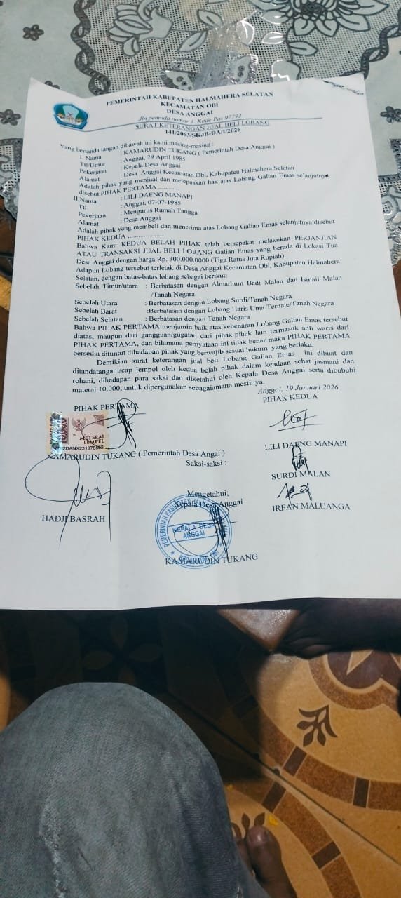 Pasalnya, kades telah menjual salah satu lobang galian emas di lokasi tambang rakyat pada beberapa pekan kemarin, dimana lobang tersebut menjadi sengketa antara Leonardo Khan dan Haniati Labani.